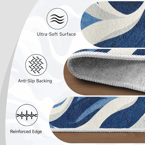 Generisch Abstrakt Blau Weiß Kurzflor Teppich Wohnzimmer 240x300 cm Linien Wellen Teppiche Waschbar Weich - Modern Einfach Carpet Groß für Schlafzimmer und Esszimmer