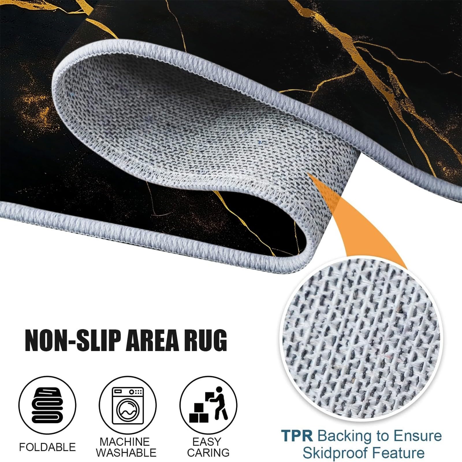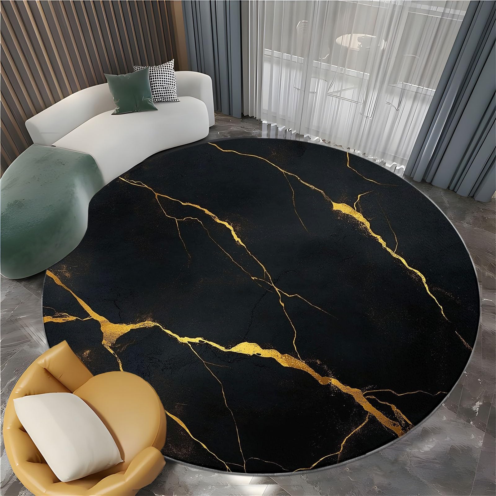 Generisch Rund Teppich Wohnzimmer Luxus-Marmor Schwarz-Gold 200 cm Rund Teppich- Küche Jugendzimmer Esszimmer Flur und Schlafzimmer Rund Teppich Kurzflor Rund Teppich Extra Weich Pflegeleicht
